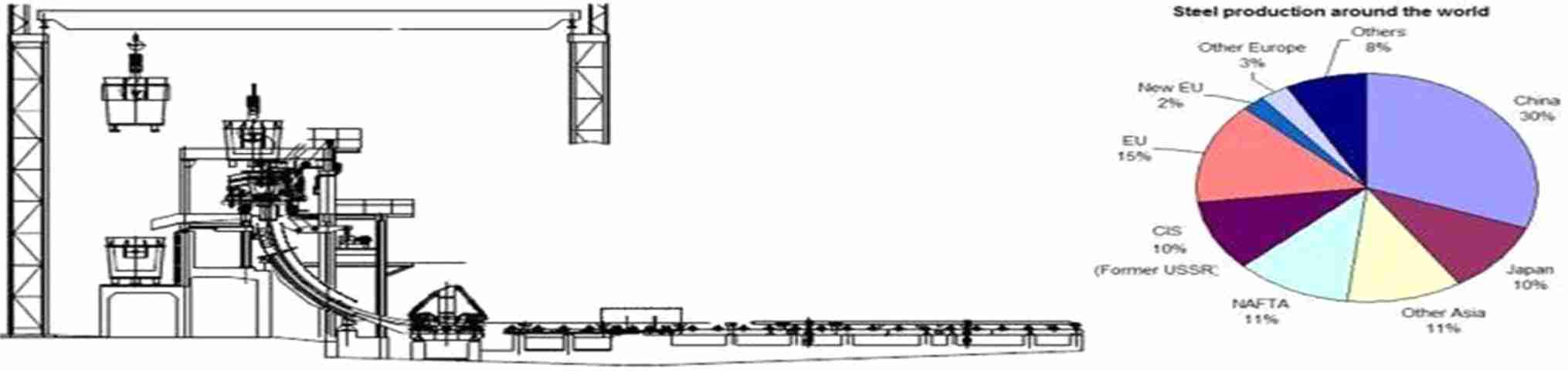 Continuous Casting is the process whereby molten steel is solidified into a "semi finished" billet, bloom, or slab for subsequent rolling in the finishing mills. Prior to the introduction of Continuous Casting in the 1950s, steel was poured into stationary molds to form "ingots". Since then, "continuous casting" has evolved to achieve improved yield, quality, productivity and cost efficiency.